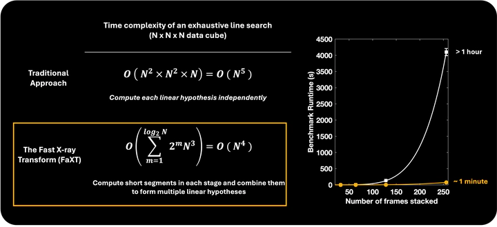 Current space situational awareness systems face significant challenges in tracking objects without precise prior information—particularly when targets are small or distant, such as objects in cislunar space, small maneuverable platforms, and orbital debris. A method that has traditionally proven effective for un-cued detections of faint objects is the track-before-detect or synthetic tracking approach, which aggregates a target’s signal across multiple frames to improve the signal-to-noise ratio for detection. However, the computational complexity of track-before-detect methods increases rapidly with search volume, making them inefficient for large-scale or real-time applications.